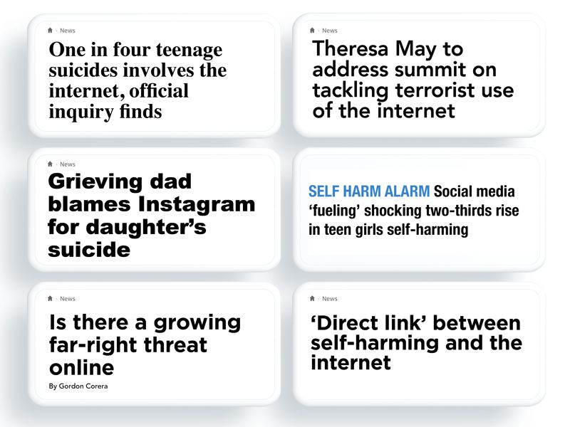 Internet companies have been firmly in the firing line in recent times as the source of these harmful experiences. Newspaper headlines and government statements routinely link the internet to tragedies such as teen suicides and terrorist attacks.