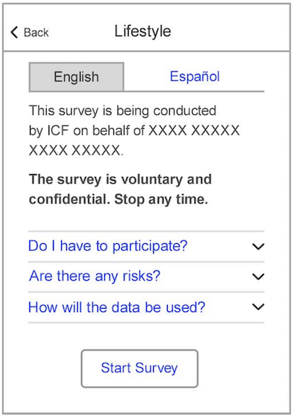 Based on this experience, we decided to revisit design options for smartphone consent by utilizing the expertise of ICF’s user interface (UI) and user experience (UX) designers. Our designers hashed out an approach that could satisfy the informed consent requirements while delivering a satisfactory experience to study subjects. We focused our efforts on simpler design, more digestible content, and usability.