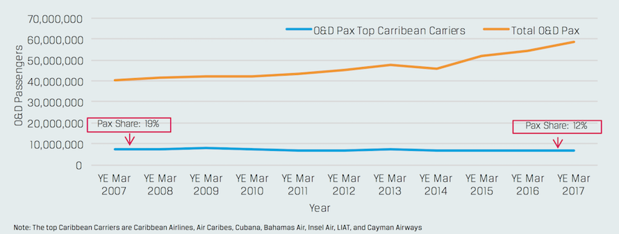 Caribbean O&D Passengers by Year | YE March 2007 - YE March 2017