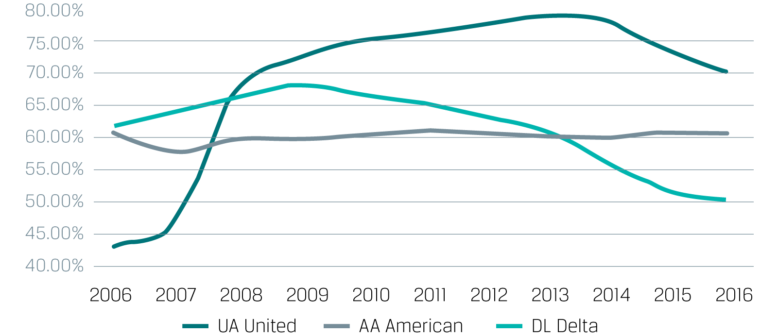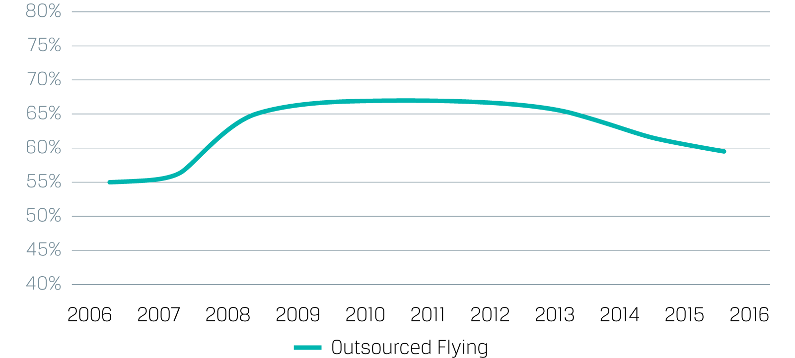 New numbers, however, show that major carriers are starting to buck the trend. By 2016, major carriers outsourced closer to 60 percent of domestic flights1 — and the percentage is still declining. Here’s why: